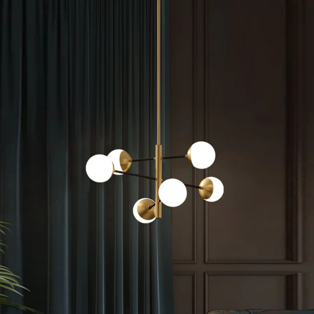Compass 6’lı Avize, mat gold rengiyle mekanlarınıza zarafet ve lüks bir hava katar. Altın rengin mat dokusuyla buluşması, avizenin hem modern hem de sofistike bir görünüm sunmasını sağlar. Minimal detayları ve simetrik yapısıyla her dekorasyon tarzına uyum sağlayarak mekanın estetik değerini artırır.